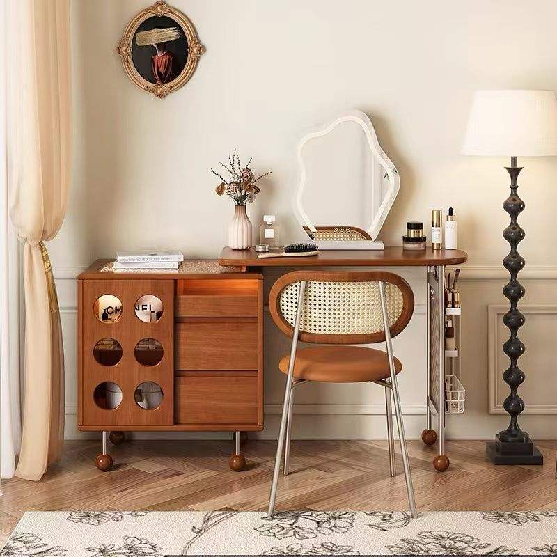 French Retro Style Telescopic Dressing Table With Vanity Mirror And Drawer Solid Wood Extendable Bedroom Makeup Vanities