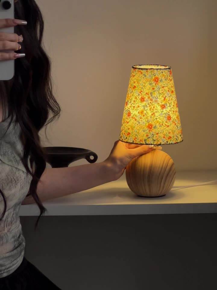 French Romantic Floral Retro Desk Lamp Bedroom and Study Decoration Internet Red Solid Wood Decoration Antique Bedside Lamp