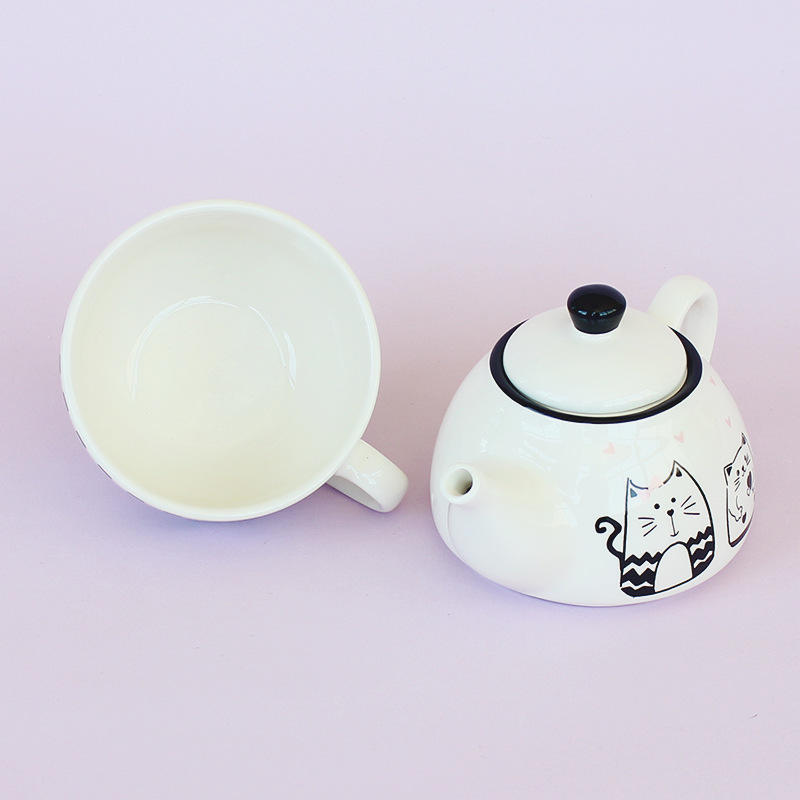 French Romantic and Cute Cat, European and American Black and White Ceramic Teapot Set