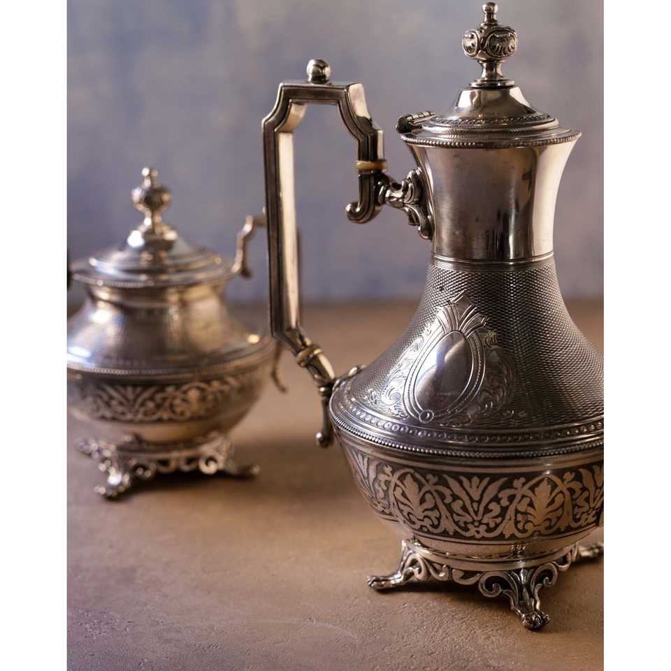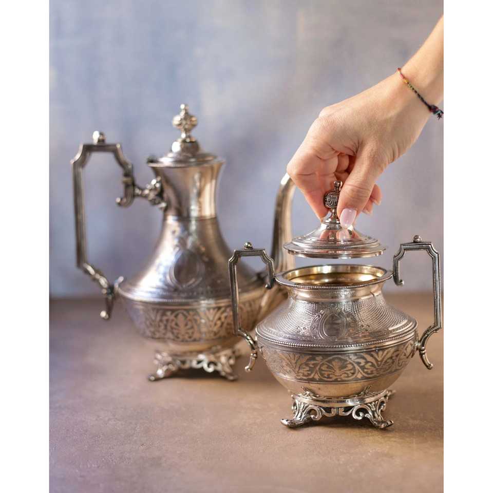Daniele F. French Silver Metal Tea Set with Elegant Kettle and Pot for Tea Lovers