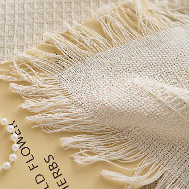 French Style Cotton Linen Round Tablecloth With Tassel Home Decor Washable Solid Color Waffle Texture Table Cover