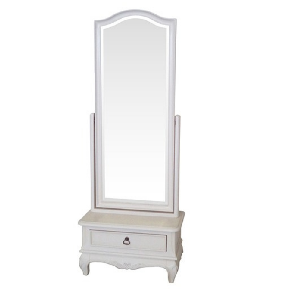 French Style Elegant White Mahogany Cheval Mirror Handcrafted Wooden Frame Standing Floor Mirror