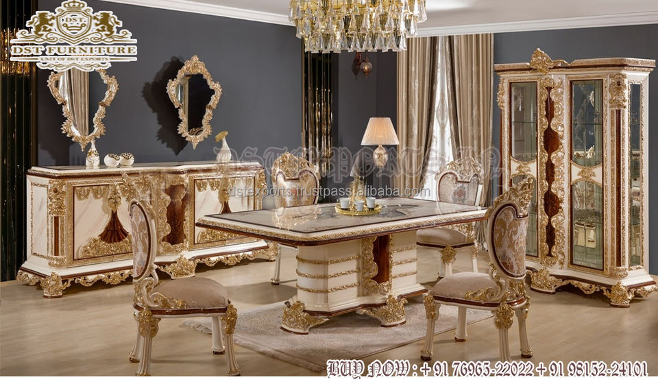 Product name:French Style White Gold Polish Dining Table Set