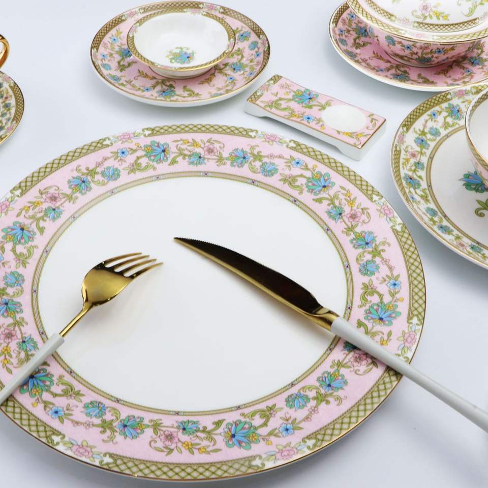 French Tableware Household Tableware suit Yoshino Sakura Bone China Rice Bowl Plate Enamel Sakura Dish Afternoon Tea