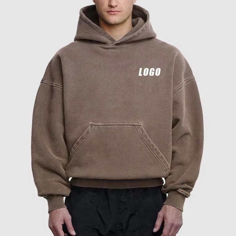 French Terry 600gsm Heavyweight 100% Cotton Blank Oversized Acid Washed Cropped Fit Boxy Hoodie for Men