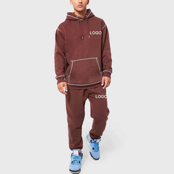 French Terry Custom Reverse Contrast Stitch Hooded Men's Windproof Loose Jogging Pants Two Piece Set Casual Made by AFSAR SPORTS