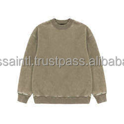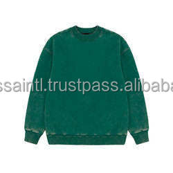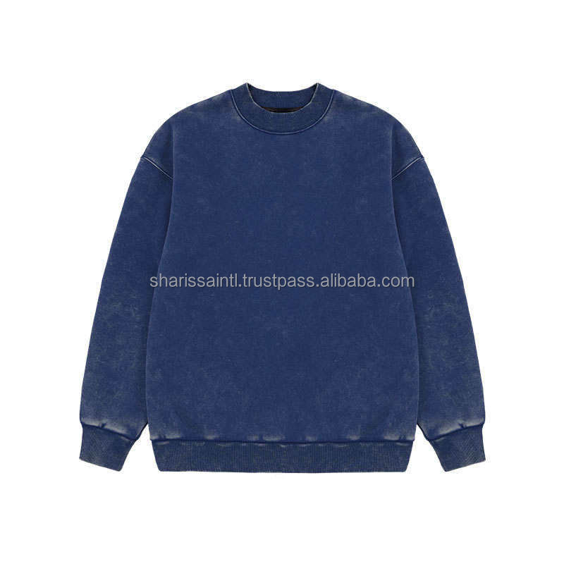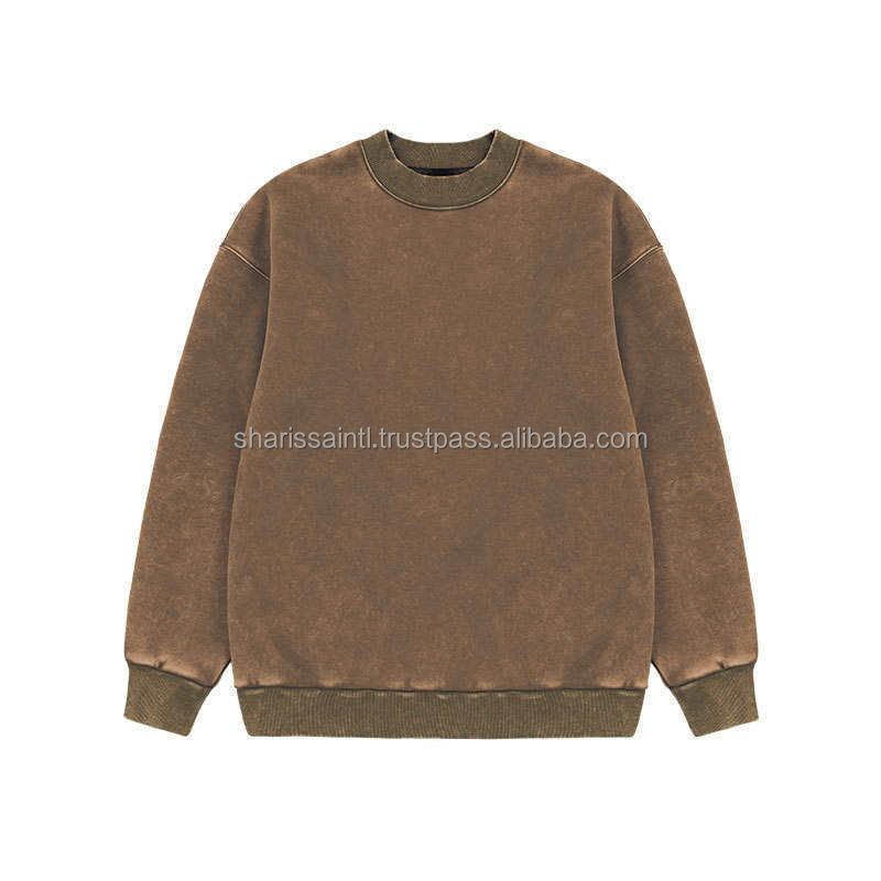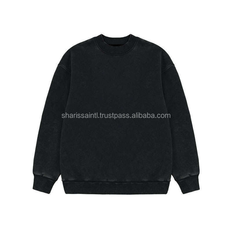 French Terry Fleece Cotton Pullover Sweater Acid Wash Unisex Crewneck Oversized Vintage Mock Neck Sweatshirt for Men