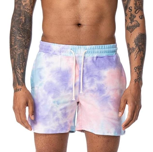 French Terry Sun Faded Tie Dye Men Sweat Short With Drawstring Knee Length Beach Summer Wear Elastic Stretchy Shorts Breathable