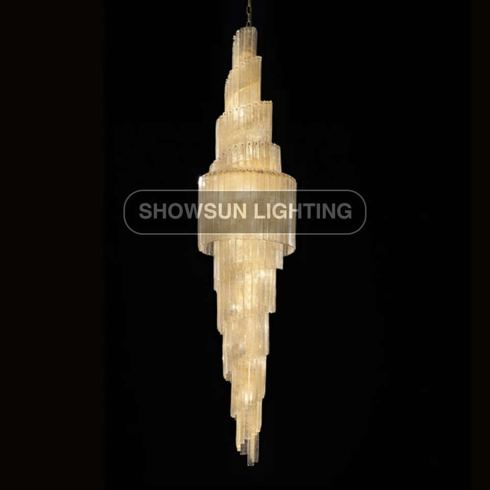 French Villa Living Room Crystal Lamp Italian Duplex High-end Luxury Staircase Long Amber Glass Chandelier