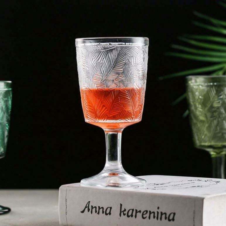 French Vintage Embossed Leaf Wine Glass - Crystal Champagne Goblet with Elegant Stem for Home, Party, Luxury Dining (Barware)