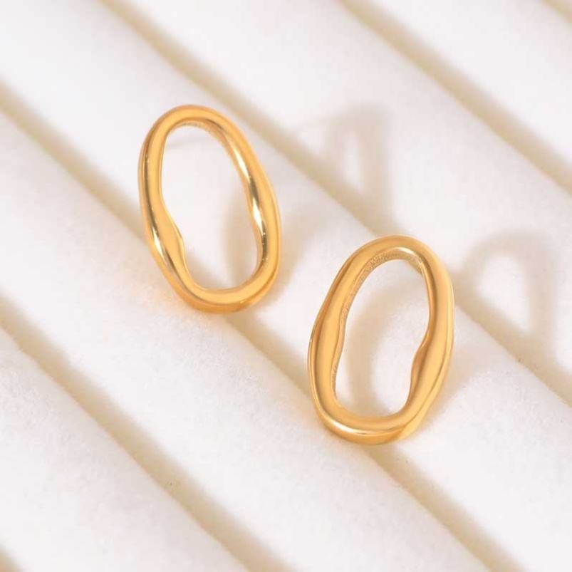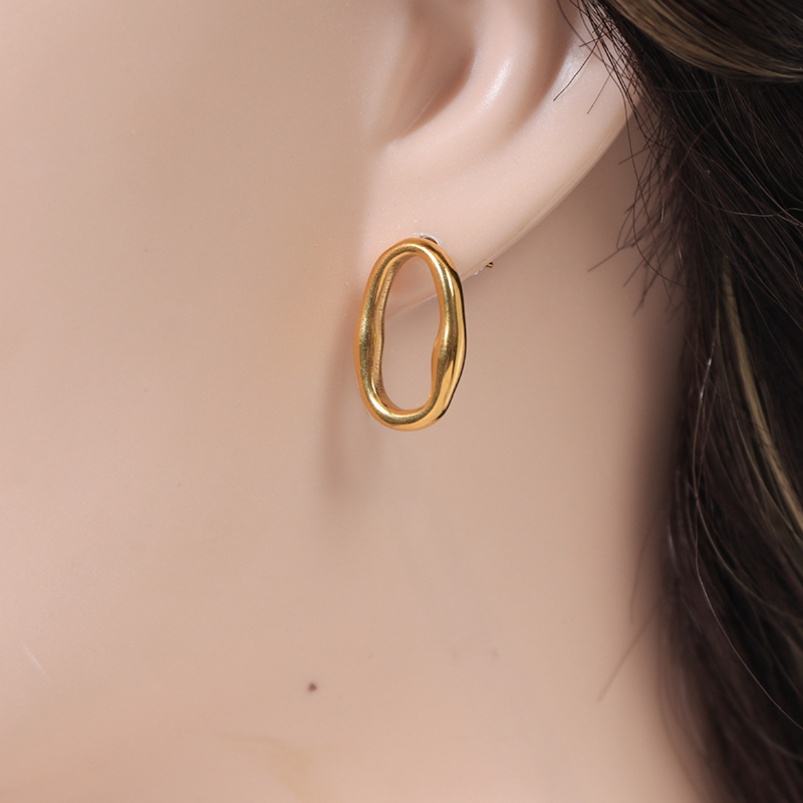 French Vintage Geometric Stainless Steel Earrings Irregular Ellipse Minimalist Unisex Jewelry Hypoallergenic Luxury Earring