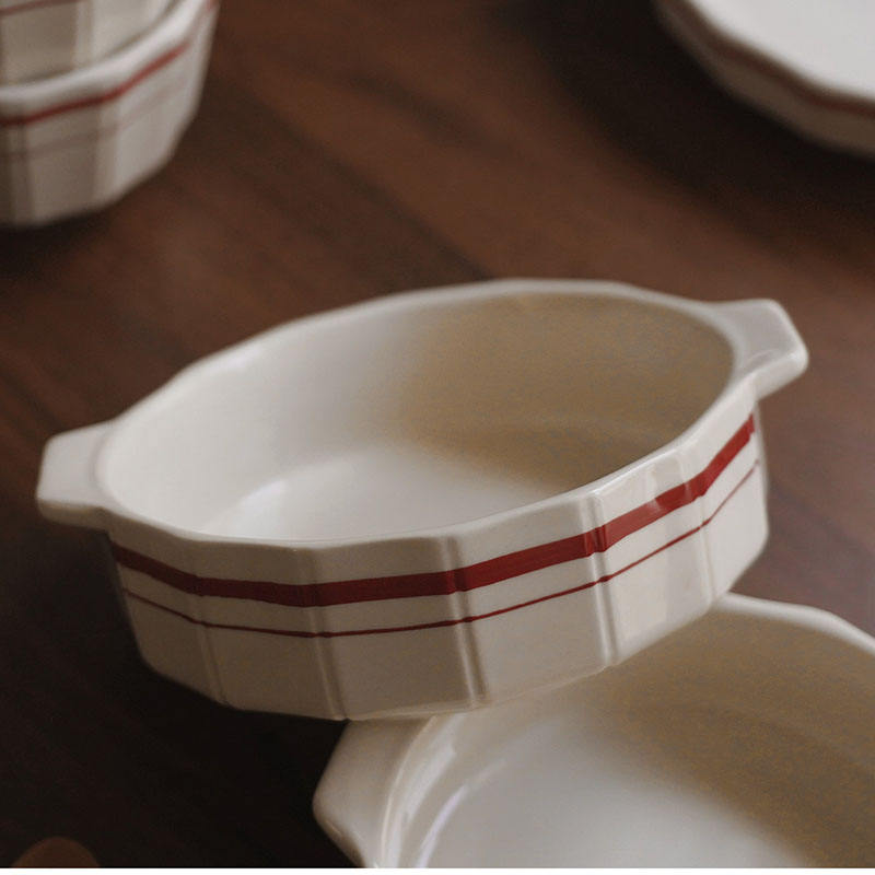 Product name:French vintage hand-painted red lines ceramic tableware