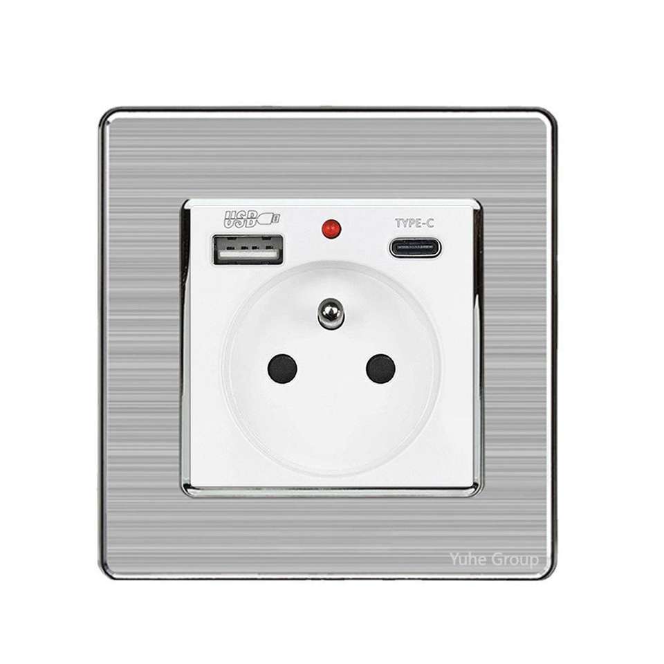 French Wall Electrical Outlet with USB-C Port PC Material