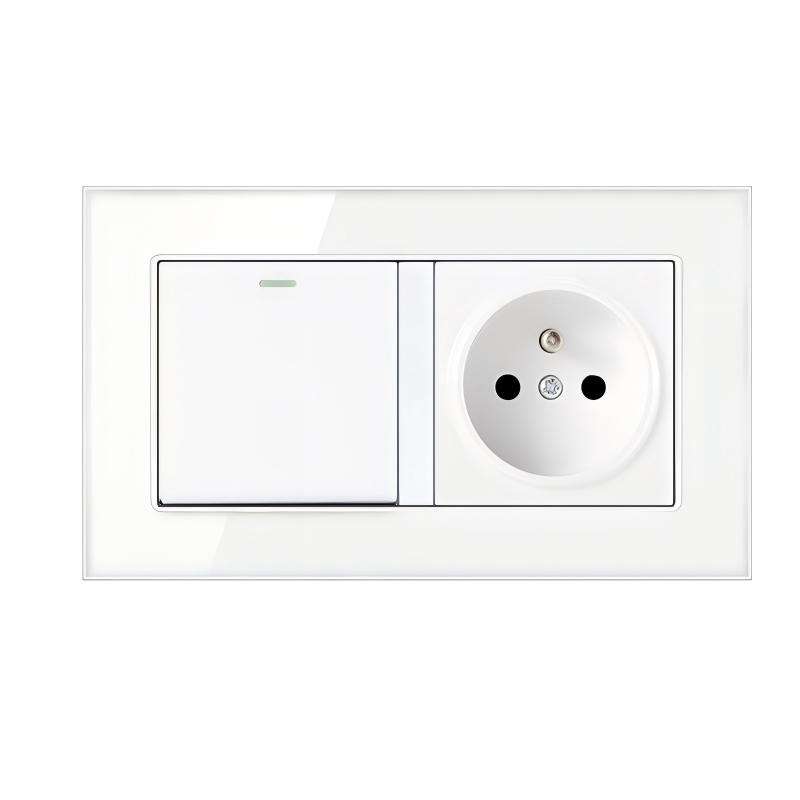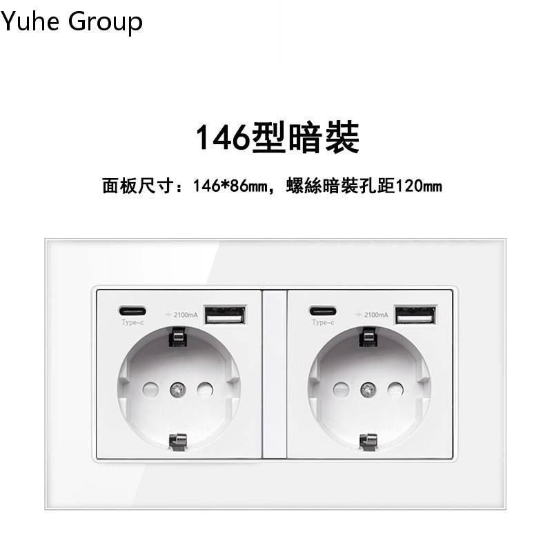 French Wall Mounted Glass Power Socket and Switch with Dual USB Charging Ports Touch Panel European 16A
