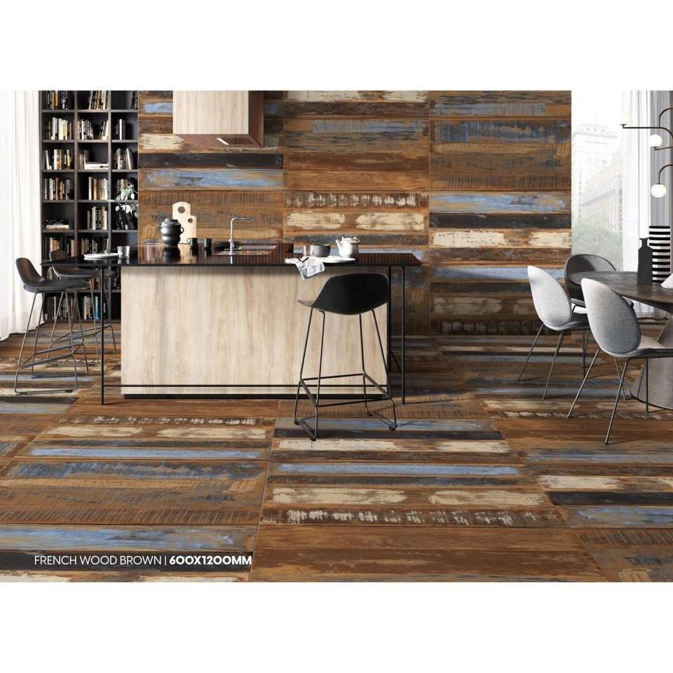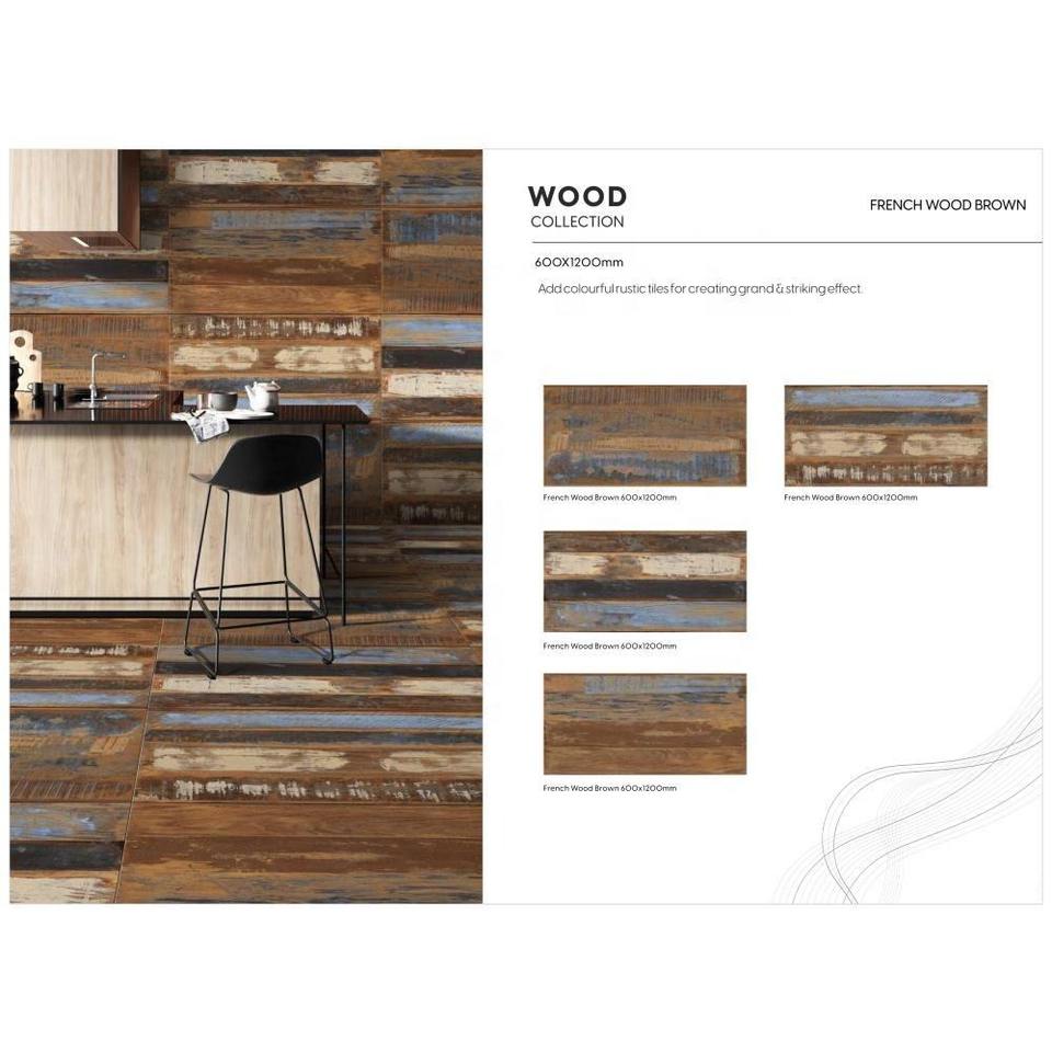 French Wood Brown 600x1200mm Glazed Porcelain Wall Floor Tiles Wooden Design