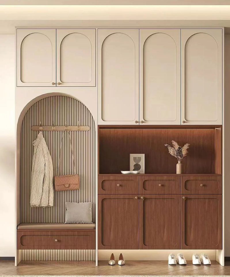 French cream entryway shoe cabinet storage
