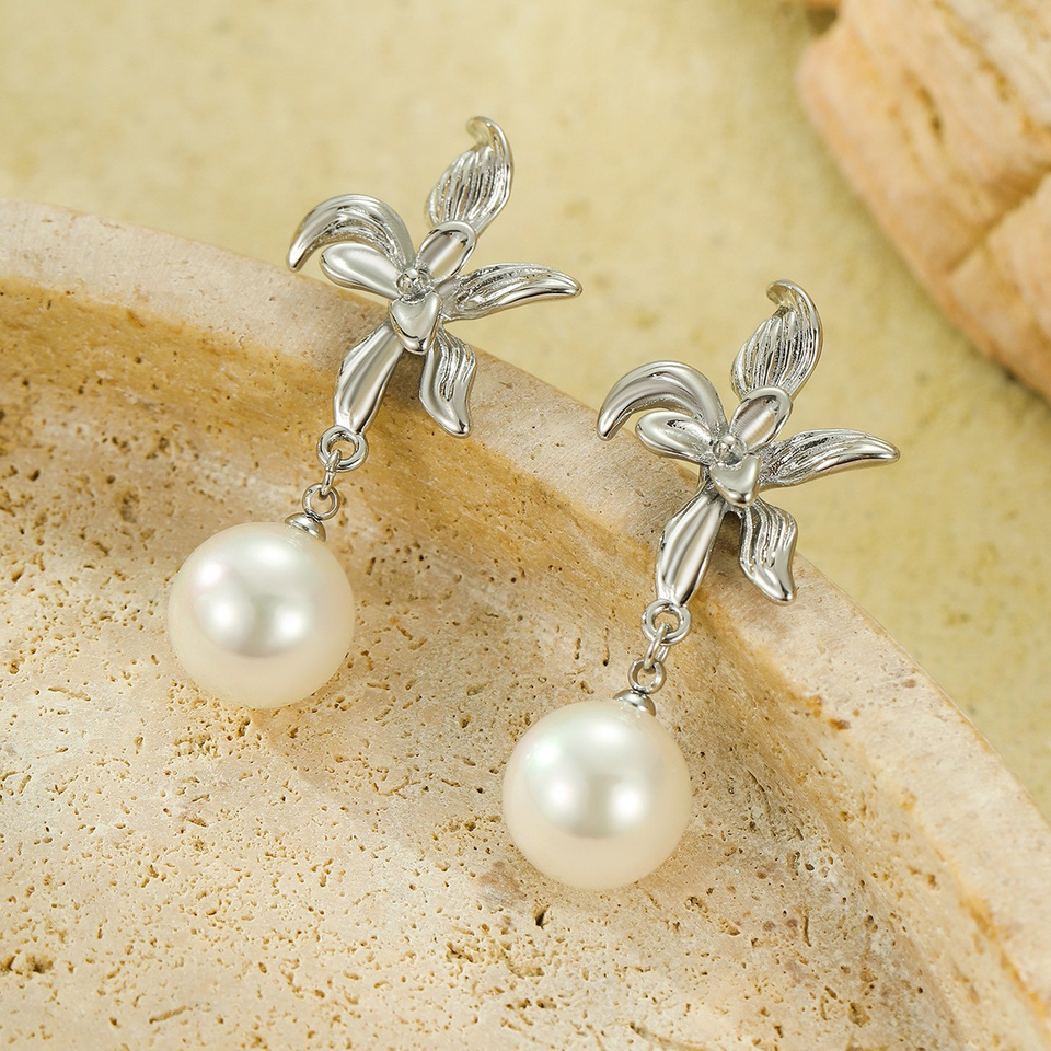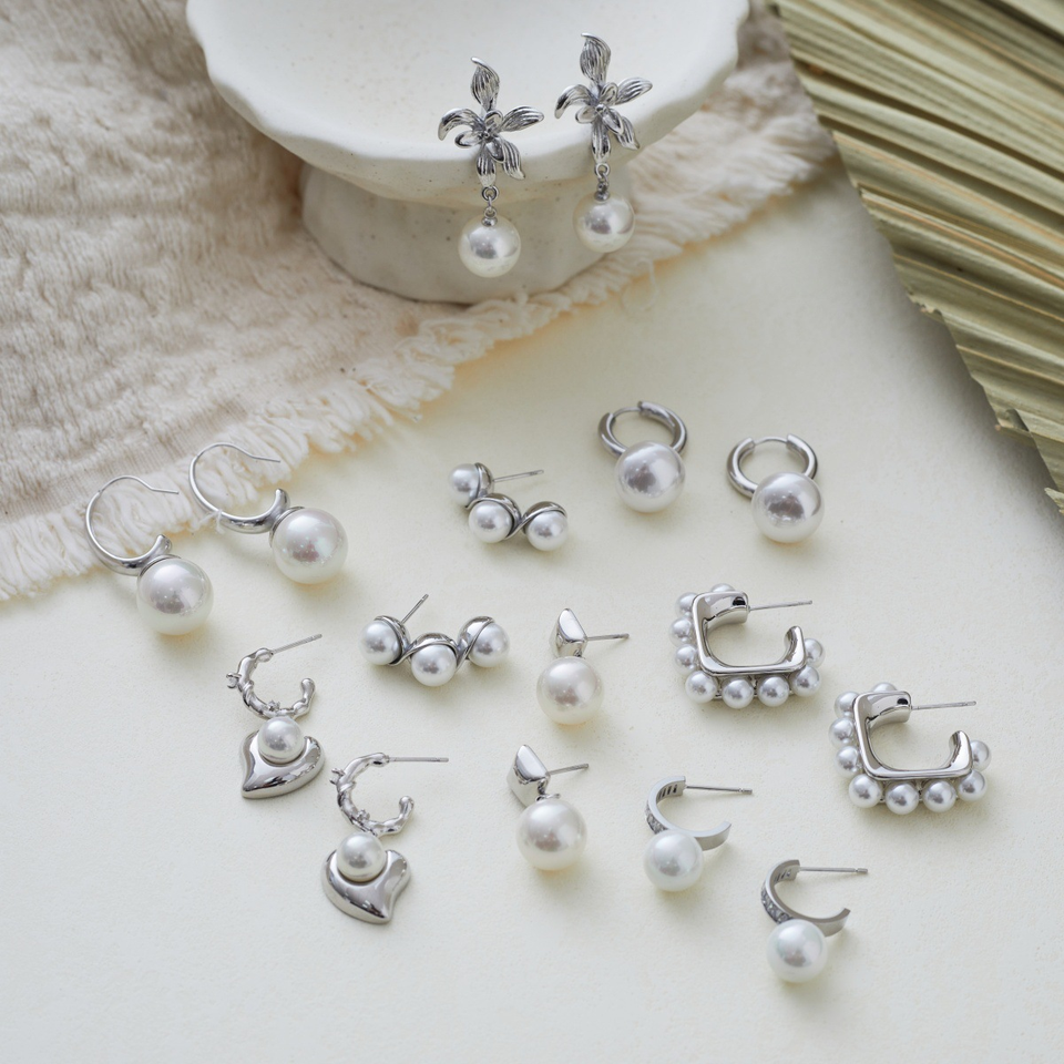 French retro versatile stainless steel flower stud earrings - a unique and minimalist design featuring pearls.
