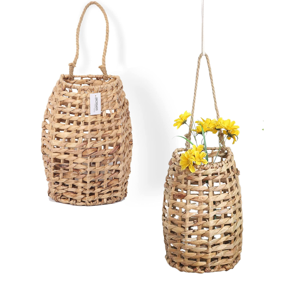 Fresh Additions Woven Water Hyacinth Indoor Hanging Basket for Home, Garden, and Farmhouse Wall Decor