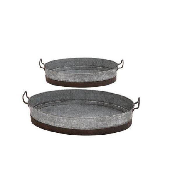 Fresh Arrival Home Kitchen Supplies Iron Handle Rectangular Galvanized Serving Tray Hotels Restaurants Serving Tray