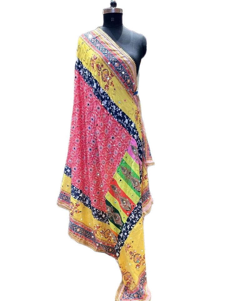 Ethereal Floral Pattern Embroidered Pakistani Silk Dupatta Fresh Arrival with Mirrors Golden Lace Border Ethereal Ethnic Style