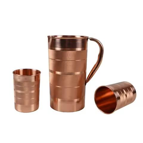 Fresh Arrivals and Top Trendy Design Copper Jug and Glass Set With Hammered Design With Shiny Polished Mostly Use in Home Hotels