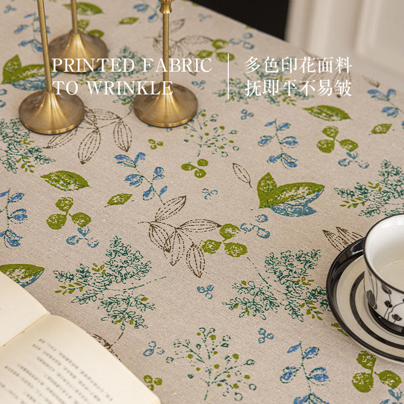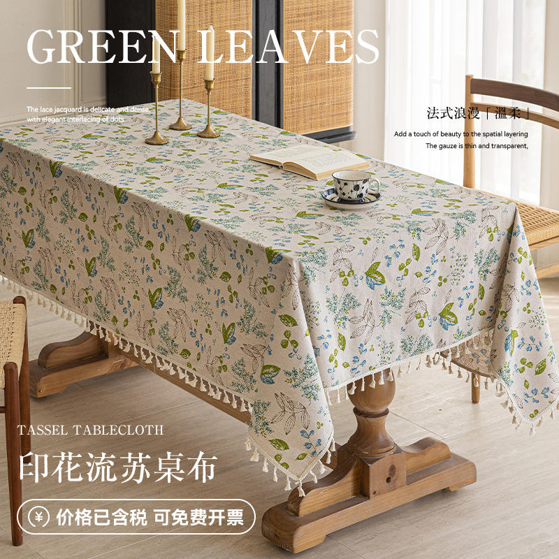 Fresh Elegant Faux Cotton Linen Tassel Waterproof Tablecloth Printed Plants Flowers Rectangle Home Decorative Cover