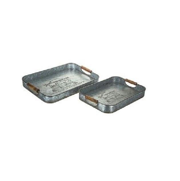Fresh Selling Home Kitchen Supplies Wooden Handle Rectangular Galvanized Serving Tray Hotels Restaurants Serving Tray