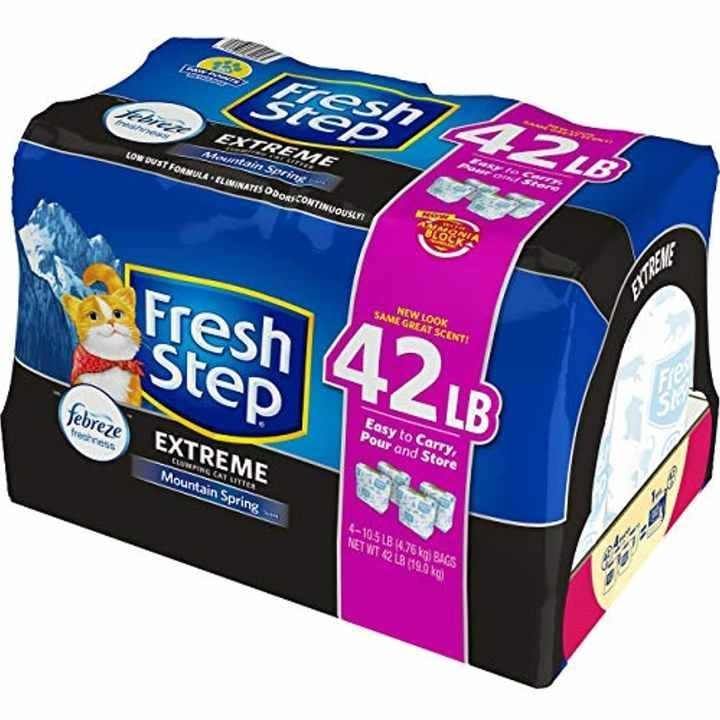 Fresh Step Extreme Scented Cat Litter 42 Pounds Mountain Spring Power of Febreze Clumping Litter Crystal Sand PP Material Dogs