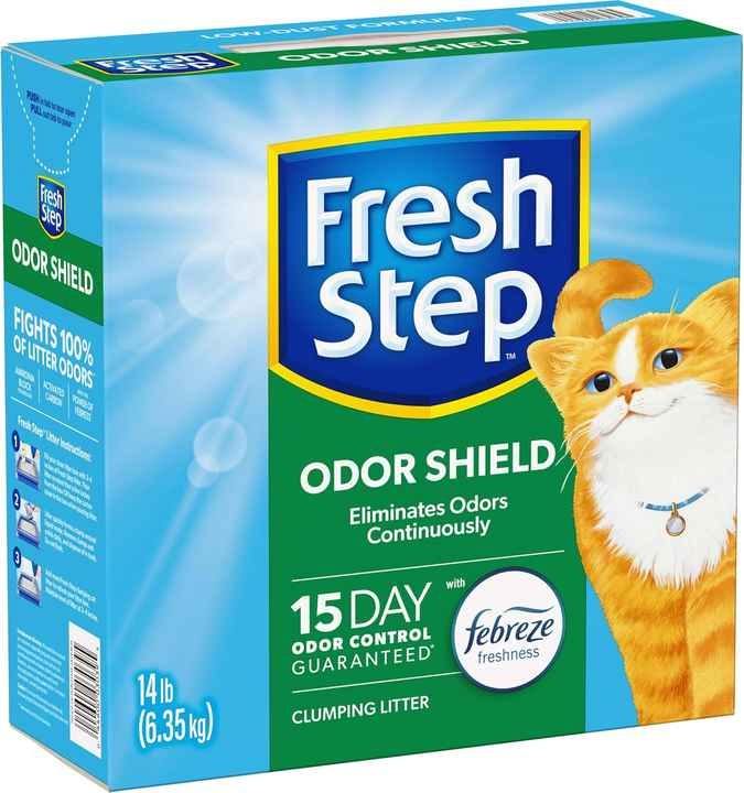 Fresh Step Odor Shield 14 lb. Box Febreze Freshness Clumping Litter Continuous Cat Litter Odor Eliminator Pet Cleaning & Bathing