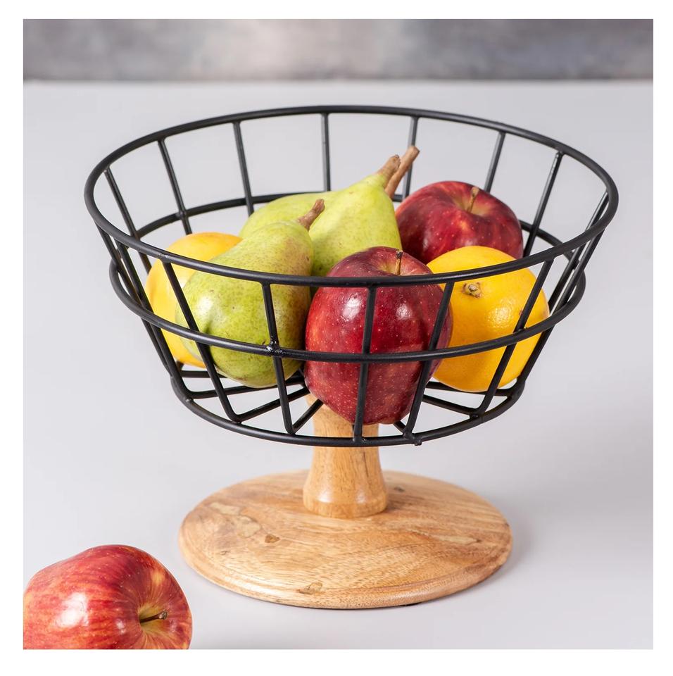 Fresh Trend American Style Metal Wire Storage Basket With Wooden Base Inside Customized Size Shape Colour Uses In Home Kitchen