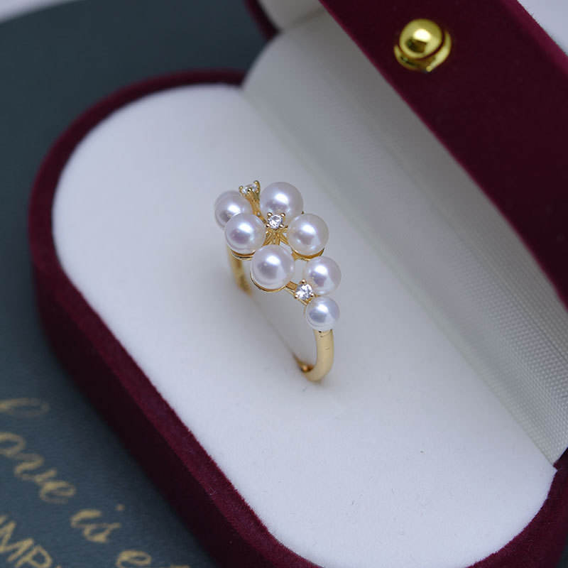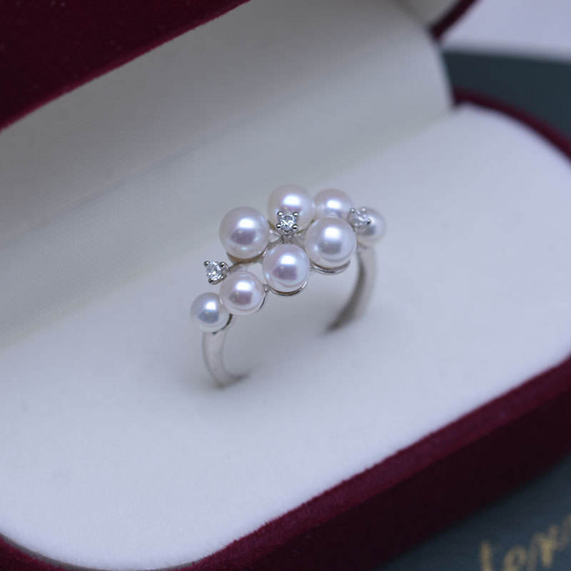 Fresh Water AK Pearl Ring 4-5mm Round Strong Light Almost Flawless White S925 Silver Multi Bead Bracelet Crystal Jewelry
