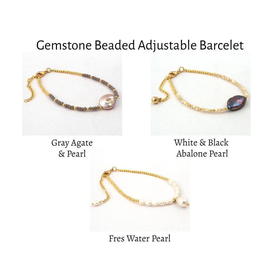 Fresh Water Pearl Gemstone Bracelet Jewelry Gold Plated Round Pearl Charm Bracelet Adjustable Golden Chain Jewelry Gift for Her