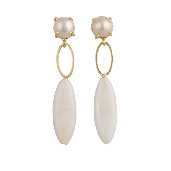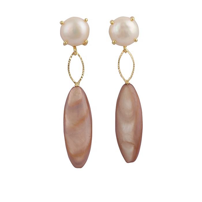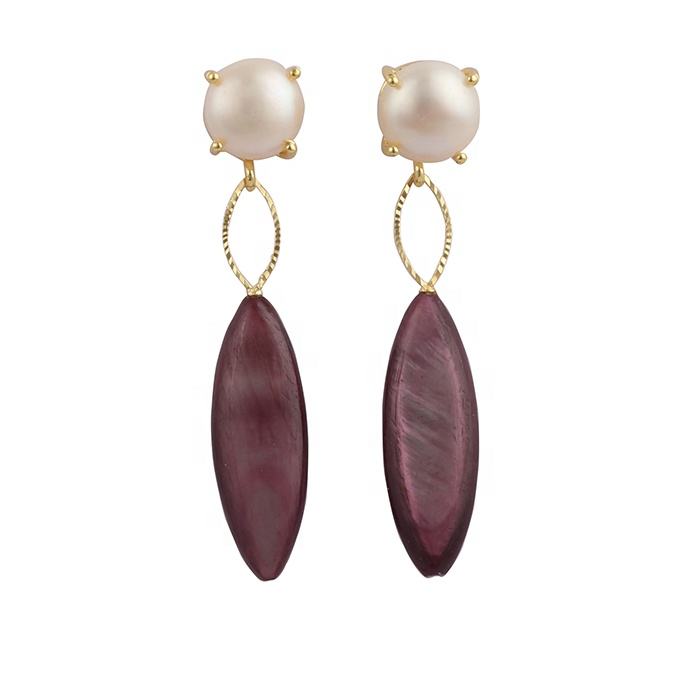 Fresh Water Pearl Gemstone Set Prong Earrings Gold Plated Handmade Blue Dangle Pearl Marquise Design Women's Dangle Drop Earring