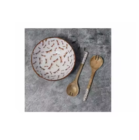 Fresh Wooden Salad Serving Bowls Dinner Flatware Bowls Wholesale Wood Enamel Bird Printed Serving Bowl for Salad & Snacks