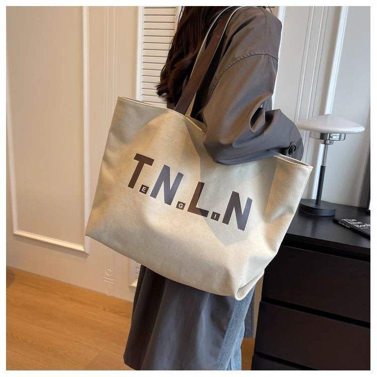 Freshman Class Leisure Fashion Canvas Reusable Zipper Portable Multifunctional Shoulder Handbag for Women