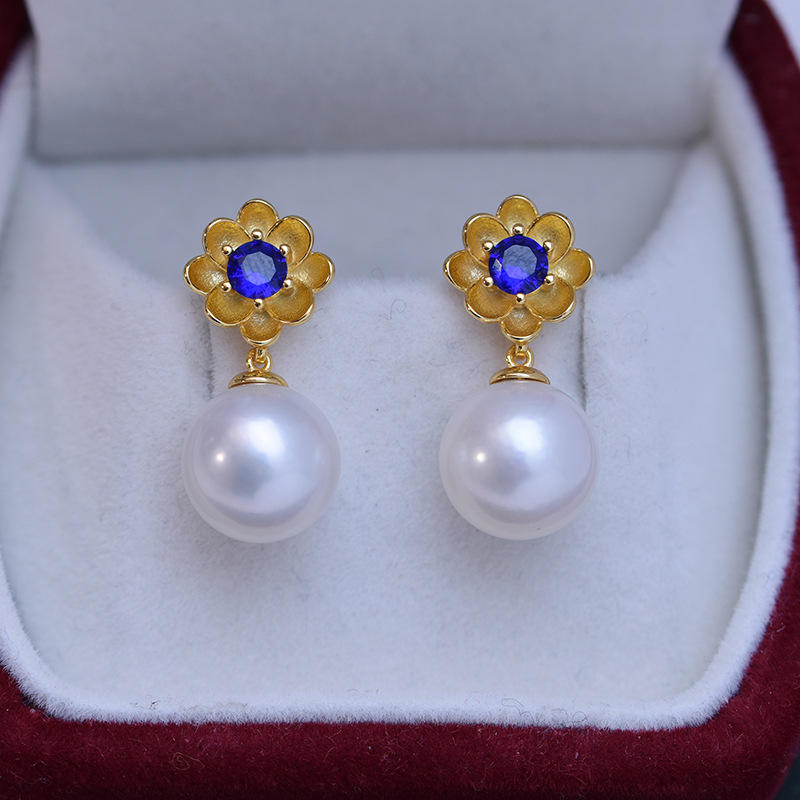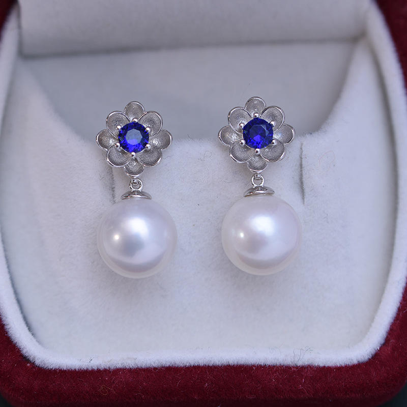 Freshwater 10-11mm White Round Pearl Earrings for Women S925 Silver Square Dangle Eardrops with Strong Light Fine Flaws