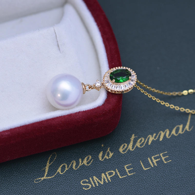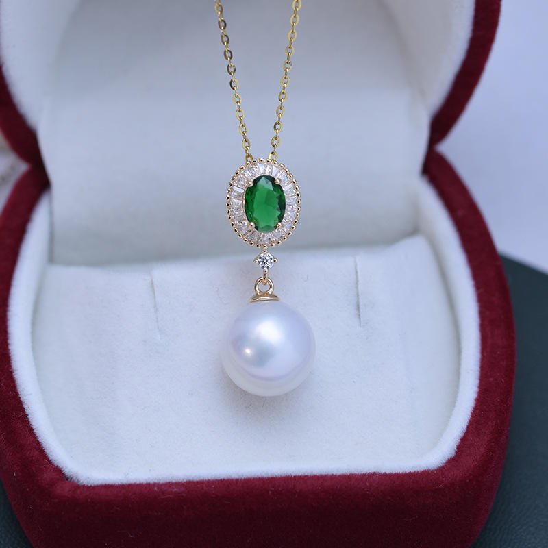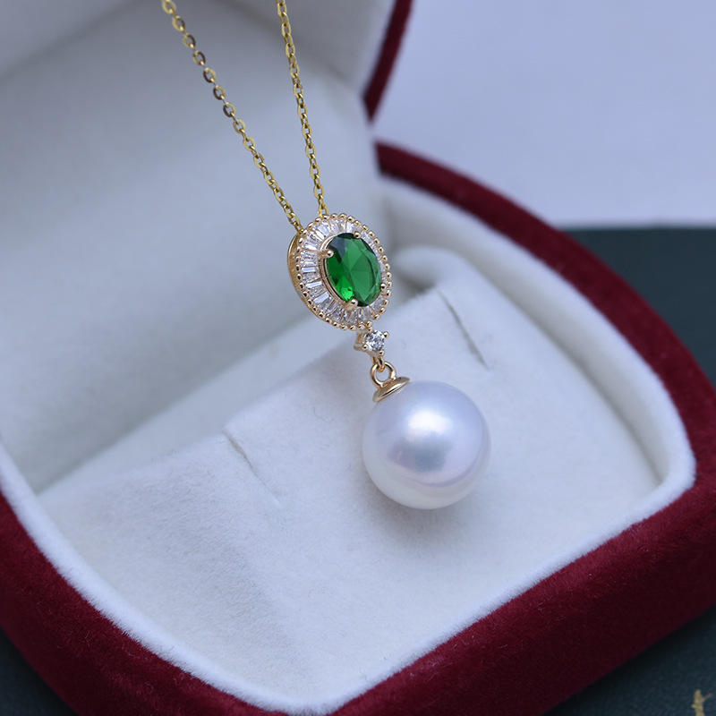 Freshwater 11-12mm Round Strong Light Fine Flaw Pearl Gourd Pendant Necklace S925 Silver for Women