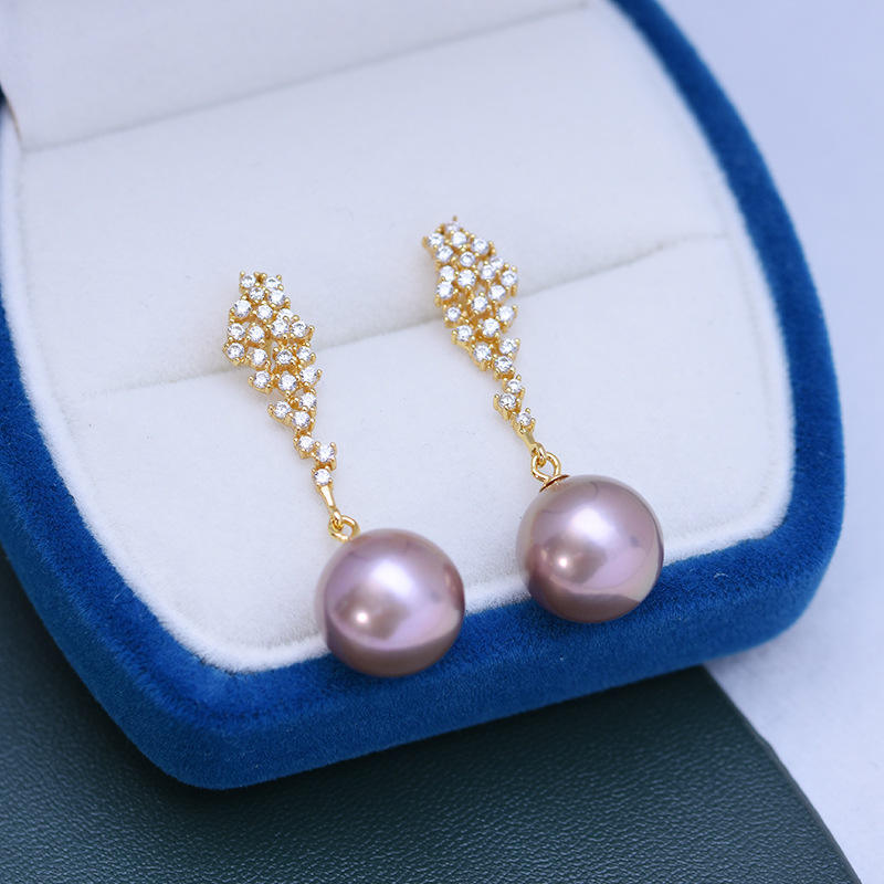 Freshwater 11-12mm S925 Silver Lotus Leaf Earrings for Women Strong Light Fine Flaws Minimally Designed Elegant Freshwater Pearl