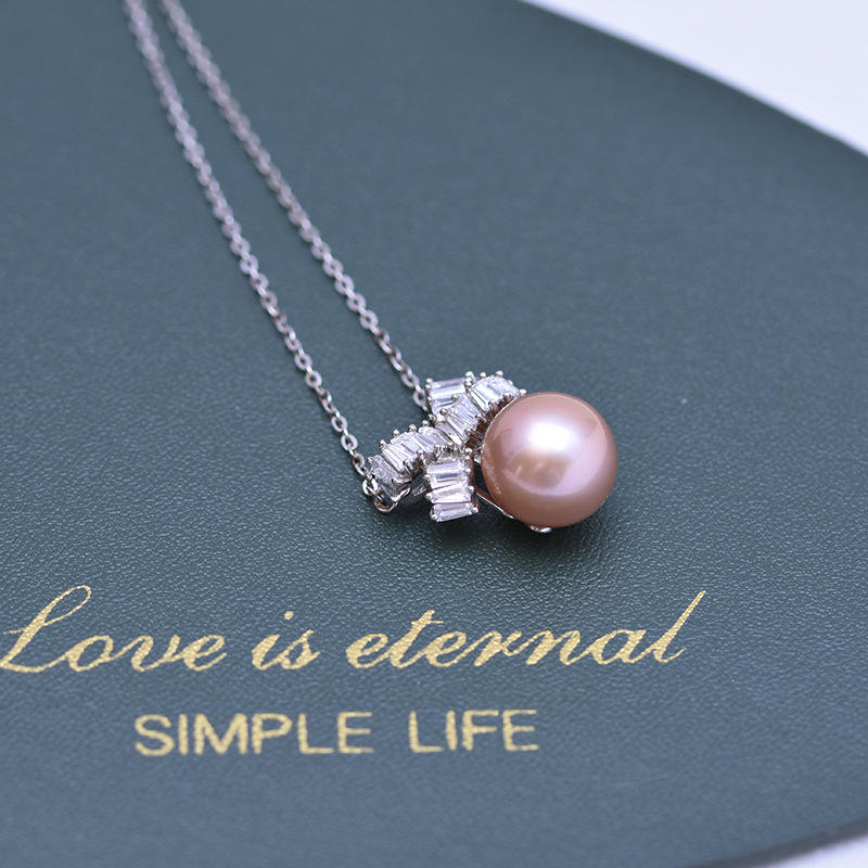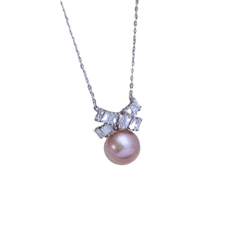 Freshwater 11-12mm White Pearl Pendant Strong Light Fine Flaws S925 Silver Necklace Collarbone Chain Inlaid Elegant Jewelry