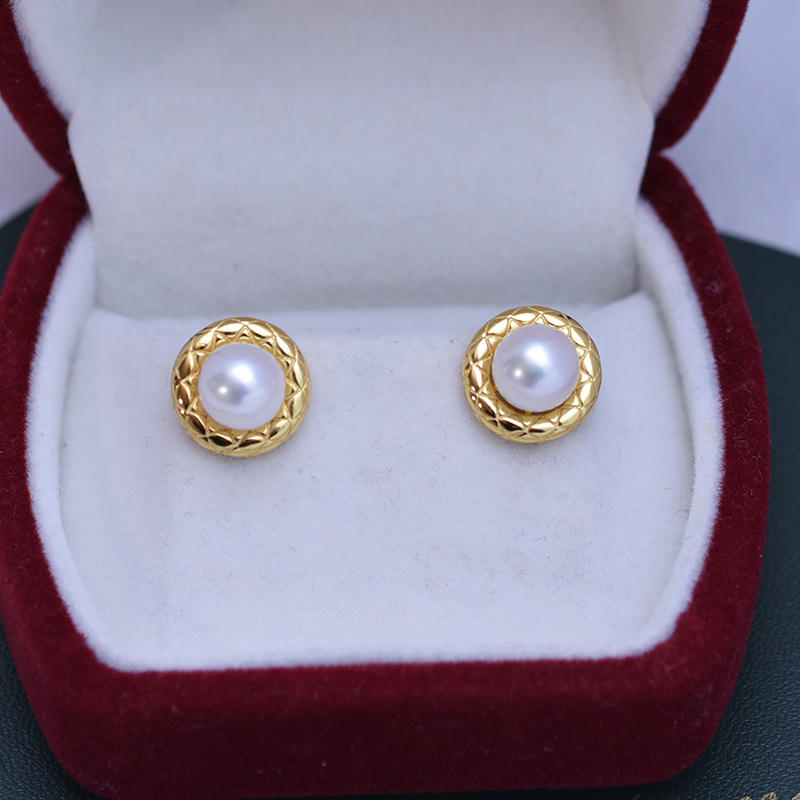 Freshwater 7-8mm White Strong Light Almost Flawless Pearls S925 Silver Triangle Bird's Nest Shaped Earrings