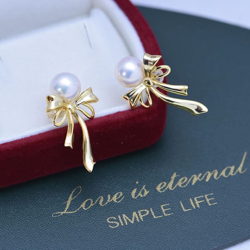 Freshwater 8-9mm White Round Strong Light Flawless Pearls S925 Silver Stud Earrings Fashionable and Elegant