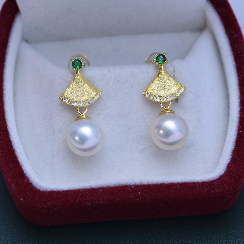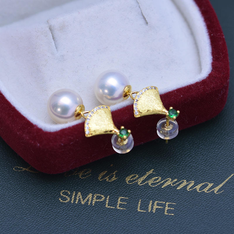 Freshwater 9-10mm White Pearl Earstuds Earrings for Women S925 Silver with Strong Light Minimally Designed Earline Fine Flaws
