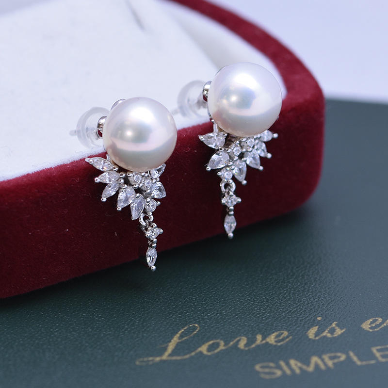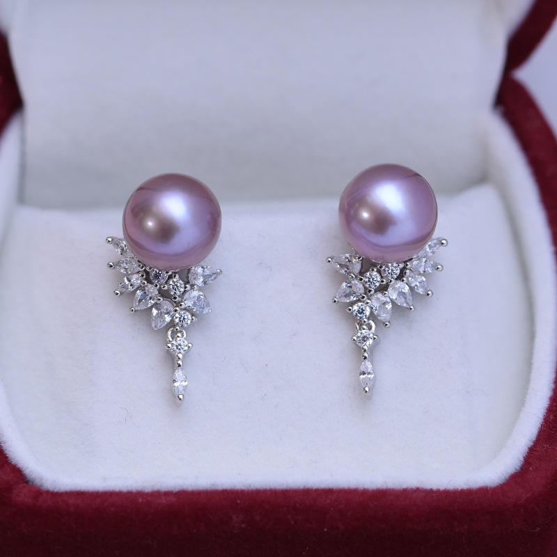 Freshwater 9-10mm White Round Strong Light Fine Pearl Earrings for Women S925 Silver Minimalist Crystal Earrings Wholesale