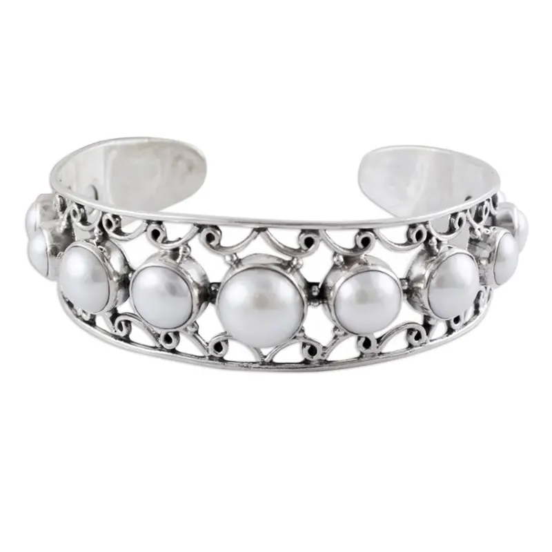 Freshwater Pearl 925 Sterling Silver Cuff Bracelet Handmade Adjustable Boho Bangle Wholesale Jewelry for Women