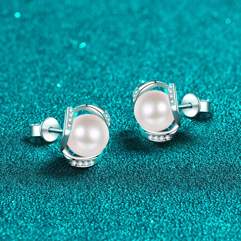 Freshwater Pearl & Moissanite S925 Sterling Silver Stud Earrings Hot Fashion Accessories for Women