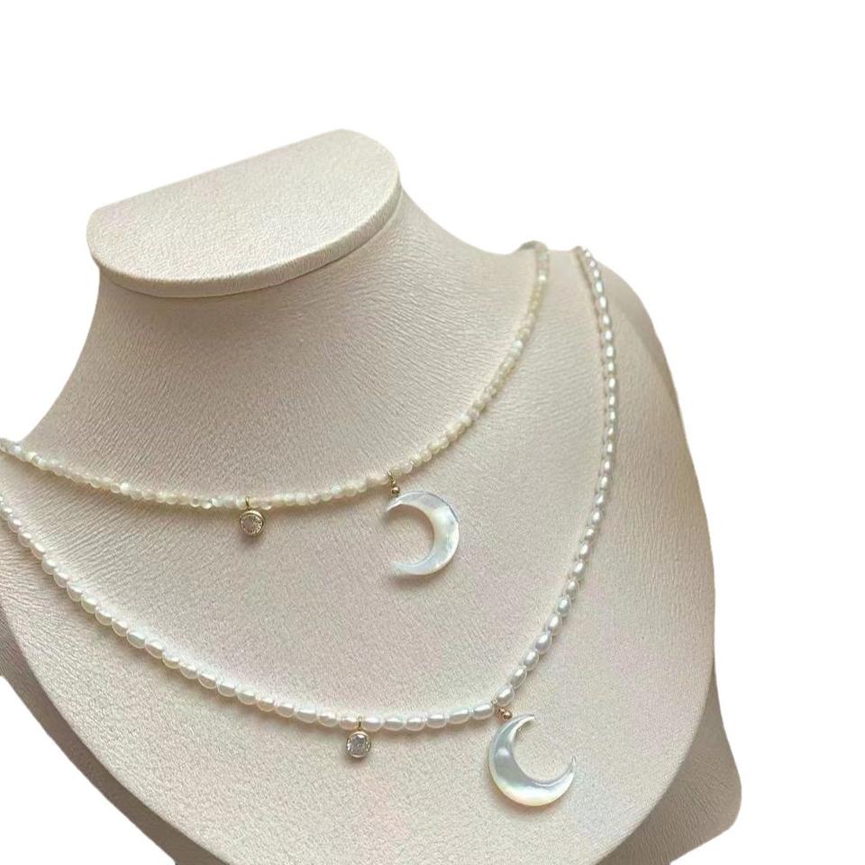 Freshwater Pearls Natural Mother Pearl Moon Pendant Necklace Collarbone Chain Best Friend Gift Female Fine Pendant Necklaces
