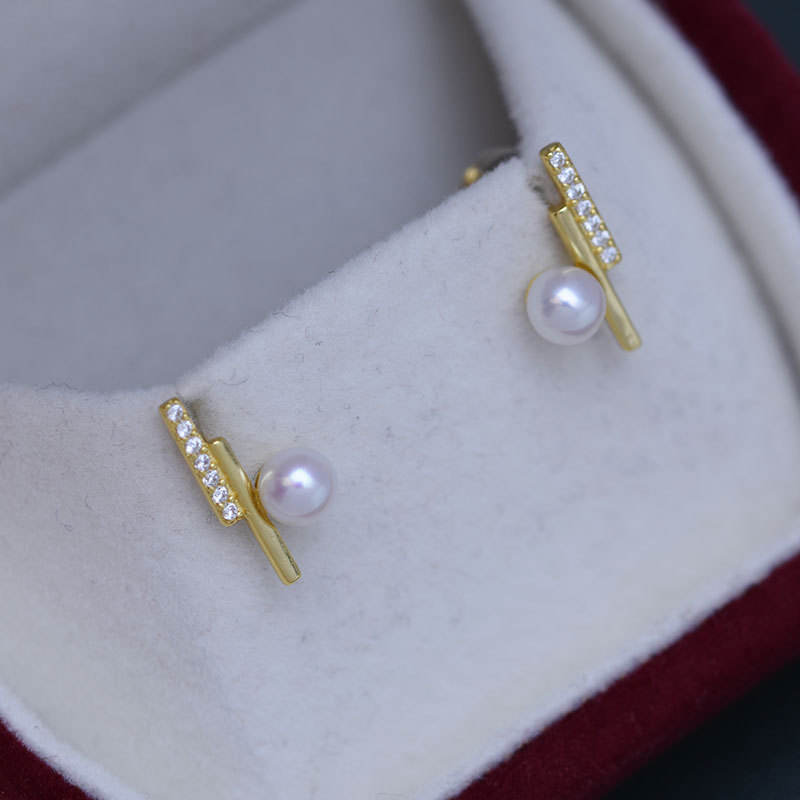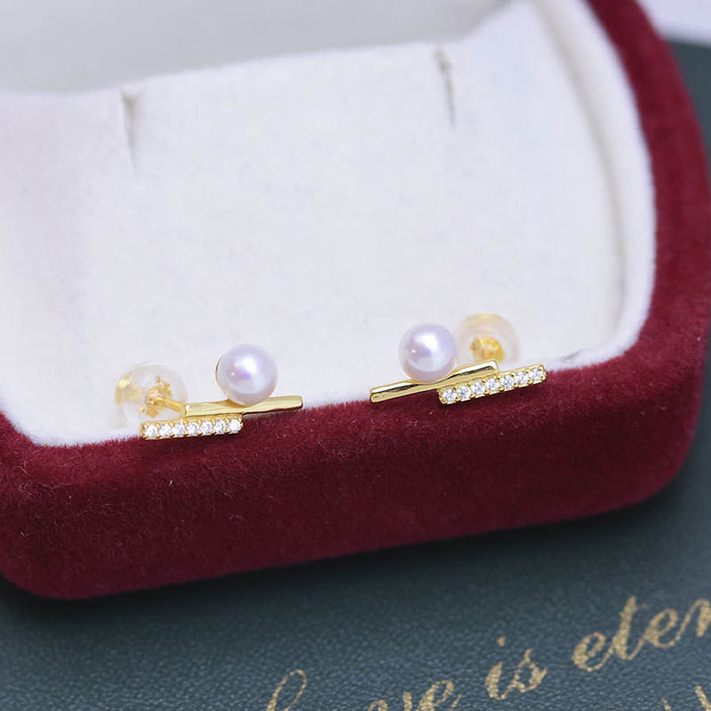 Freshwater White 4-10mm Round Pearls S925 Silver Simple Plain Nail Earrings for Women Strong Light Delicate Design with Needle