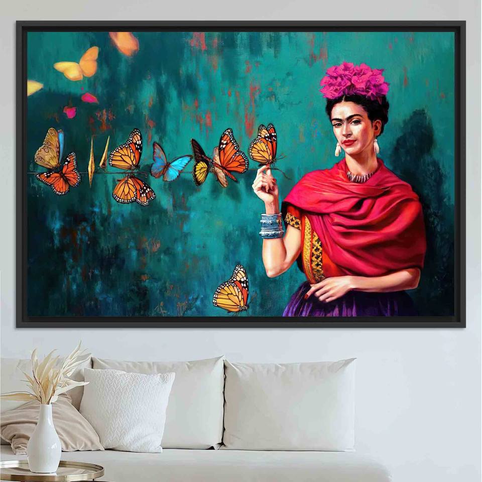Frida Kahlo Butterfly Canvas Print: Personalized Wall Art Gift,BLACK FRAMED CANVAS