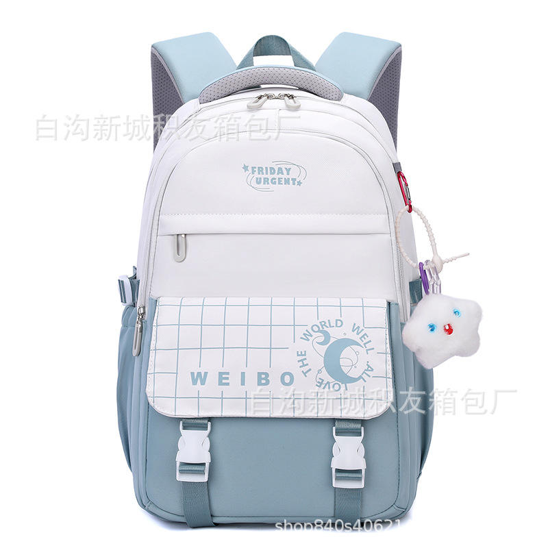 Friday Urgent Student Backpack 15 Inches Multi Layer Waterproof For Girls School Education Color Blocking Letter Pattern