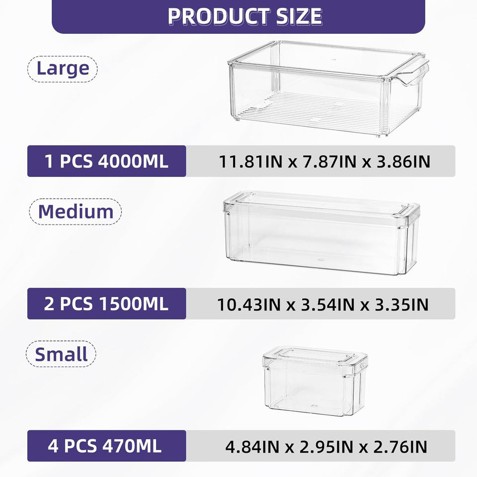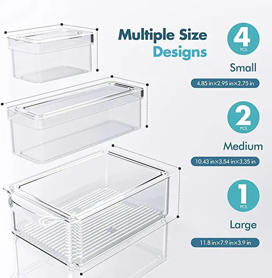 Fridge Container Storage Set Clear Plastic Refrigerator Organizer Boxes Stackable Storage Containers for Kitchen Fridge